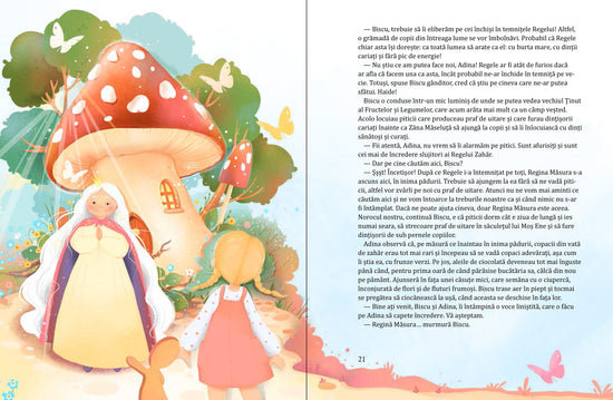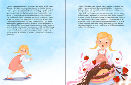 Micuța Adina adoră dulciurile, s-ar hrăni numai cu ele dacă ar putea! Este dorința ei secretă pentru aniversarea de a doua zi. Dar, tocmai când gusta pe furiș din minunatul tort pus la păstrare în frigider, se produce un mic accident care o expediază într-o aventură nemaipomenită.