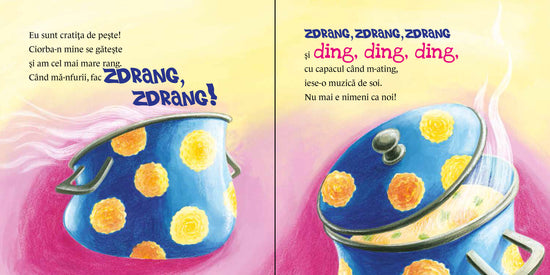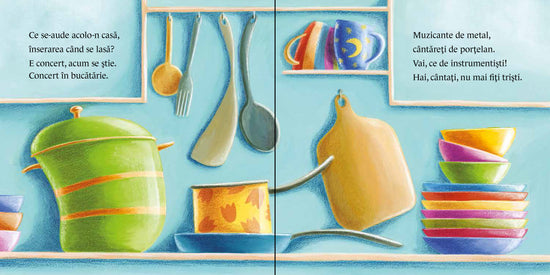Zdrang, ding, bang și hop și hârști! E plină bucătăria de artiști și cântăreți care fac o hărmălaie! O, pardon, nu-i hărmălaie, e o muzică splendidă! Cine vine la concert?