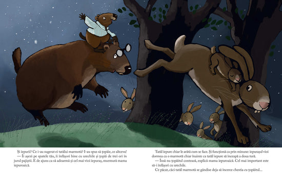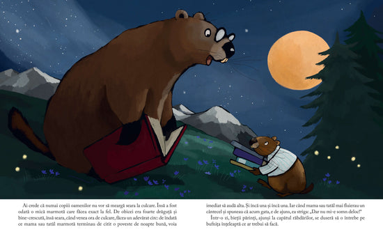 Mama şi tatăl marmotă încearcă din răsputeri să-şi adoarmă puiul. La urma urmei, marmotelor le place să doarmă! Toate dorm, cu excepţia micuţei lor marmote. După fiecare poveste de noapte bună, ea strigă: „Mai vreau una!“ O lectură perfectă pentru ritualurile de culcare!