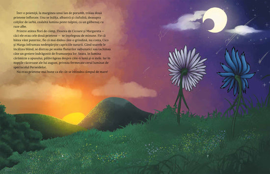 O poveste care a zguduit aproape toată vara lumea parfumată a florilor de la marginea lanului de porumb! Printre flori prietenia e neprețuită, iar adorația gâzelor care le vizitează de dimineață până seara e subiectul lor preferat pentru glume și farse amuzante. Ei bine, Margareta și Floarea de Cicoare erau cele mai bune prietene din lume și se distrau grozav împreună, doar ele două, până când a înflorit între ele o foarte roșie Floare de Mac…