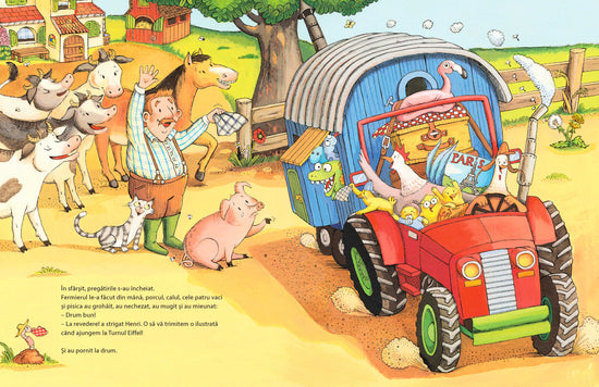 Cocoşul Henri vrea să plece în vacanţă cu toată familia. Şi nu oriunde, ci la Paris, la Turnul Eiffel. Dar nu apucă să ajungă decât la iazul din apropierea satului lor, când tractorul face pană! Să fie acesta sfârşitul frumoasei călătorii? Sau este doar începutul unei aventuri fantastice de vacanţă?