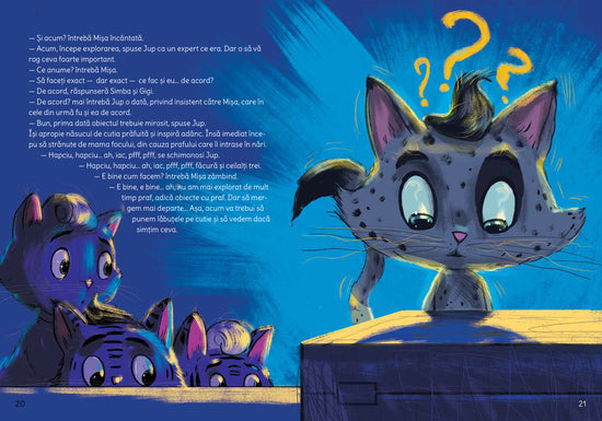 Pasionaţi de explorări de când se ştiu, Jup şi Simba o pornesc în căutarea unui mister de elucidat. Spre bucuria lor, cele două pisicuţe din vecini li se alătură şi distracţia începe.