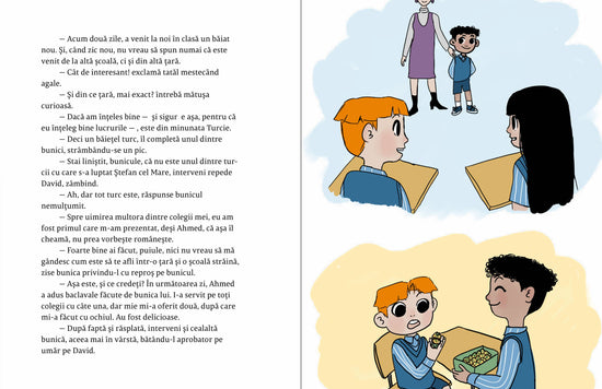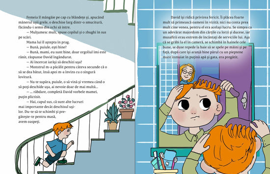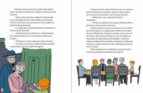 Sunt ani de zile de când David duce o luptă curajoasă împotriva ușii de fier de la intrarea în bloc. Curajoasă, dar deocamdată și fără sorți de izbândă, fiindcă ușa e prea grea pentru un băiețel. Are nevoie de o superputere ca să izbutească. Până atunci, se bucură de ceea ce poate să facă: să se împrietenească, de exemplu, cu un băiețel care nu vorbește bine românește, să-l învețe cele mai importante cuvinte! Tu știi, oare, care sunt aceste cuvinte?