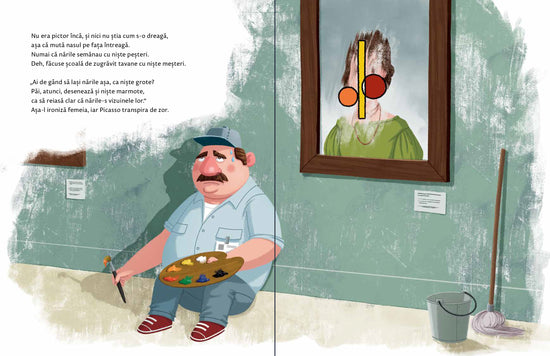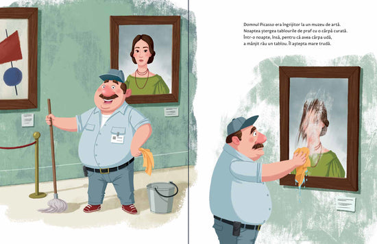 Cât de talentat e domnul care șterge tablourile de praf noaptea la muzeu? Habar n-are! Dar stați să vedeți ce se întâmplă când șterge portretul unei femei frumoase cu o cârpă prea udă! Uite-așa îi apucă pe unii talentul și iese... o minunăție. O farsă, desigur, pe seama celebrului Picasso. S-ar fi distrat și el!