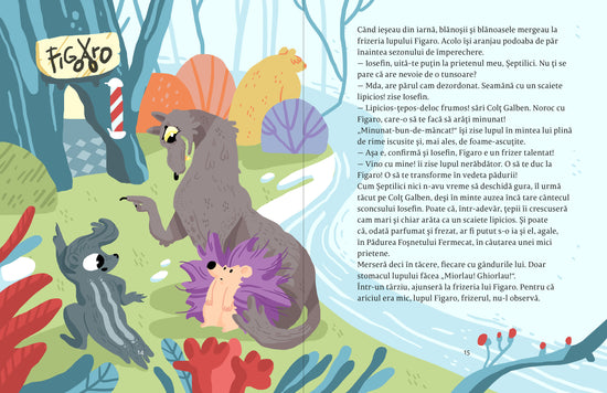 O poveste cu un lup înfometat și un arici hotărât să-și salveze pielea, chiar dacă a ajuns în frizeria lui Figaro din Pădurea Foșnetului Fermecat.