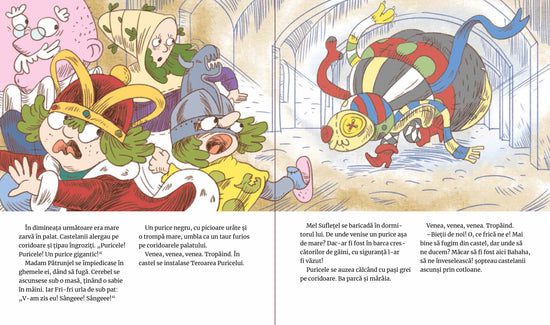 Într-o bună dimineață, Mel Suflețel se trezește în strigătele unui străjer: „Crescătorii de găini!“ Sărmanii oameni, în frunte cu regele lor, îl imploră pe Mel Suflețel să le ofere găzduire, fiindcă au o mare problemă: castelul lor a fost invadat de… purici.