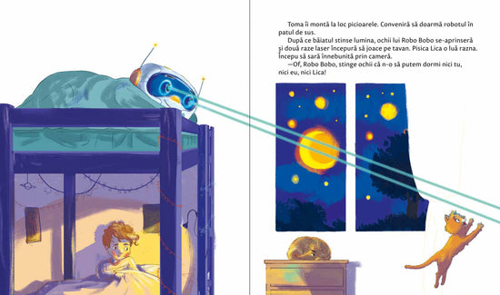Năstrușnicul Robo Bobo, robotul dependent de ciocolată, trebuie să meargă la culcare. Cum se adoarme un robot neascultător? Toți copiii știu să se spele pe dinți, dar Robo Bobo face atâtea greșeli încât se sperie și pisica, și ariciul. Oare învață până la urmă? Credeați cumva că roboții sunt ascultători și execută fără comentarii orice comenzi ar primi? Ha! Înseamnă că nu l-ați cunoscut pe Robo Bobo, robotul lui Toma! Robo Bobo știe deja să se spele pe dinți, acum copilul trebuie să-l învețe și cealaltă lecție importantă: mersul la control la dentist.