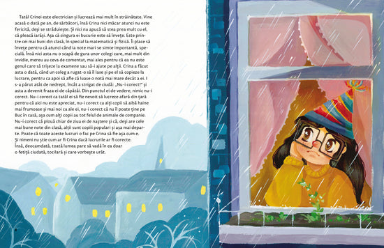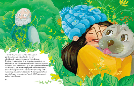 Crina, fetița din poveste, începe să vadă, prin ochelarii ei pătrățoși, lumea minunată a unei grădini ascunse și, de acolo, alte și alte minuni în jurul ei. Dacă o veți însoți și voi, copii, veți începe să vedeți și voi. Hei, oare nu cumva colegul acela al vostru, știți voi care, cel care uneori face zgomot în timpul orelor, e un clopoțel de primăvară, cu petale albăstrii?