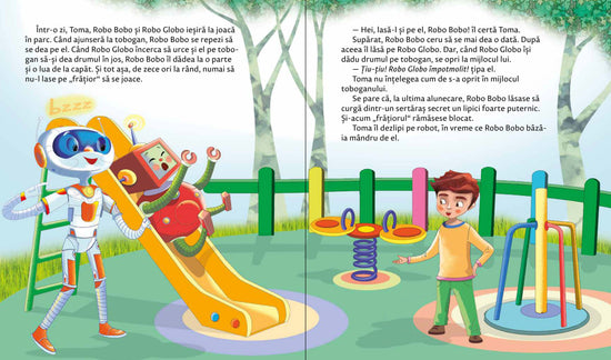 Toma credea că îi face o bucurie lui Robo Bobo dacă îi aduce un „frățior“ robot, pe Robo Globo. Doar păreau făcuți să fie prieteni, Robo Bobo și Robo Globo! Amândoi sunt veseli, amândoi pun la cale tot felul de poante, amândoi adoră ciocolata. Dar, bzz-bzz și țiu-țiu, uite că deloc nu se înțeleg! Bobo vrea să scape de Globo! Globo vrea să se joace cu Bobo! Bzz-bzz, țiu-țiu! Să vedem dacă Toma reușește să-i împace!