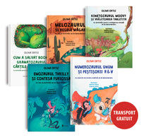 Gramatozaurul Booky și ceilalți dinozauri prietenoși trăiesc într-un somn adânc de milioane de ani, până când Maimuțica Hoțomana îi roagă să le vină în ajutor copiilor care au nevoie de ei. Împreună cu ea, Gramatozarul Booky salvează cărțile pentru copii, iar Melozaurul Jazzy îi scapă de Regele Măgar care interzisese muzica; Emozaurul Thrilly îi învață pe cei mici să nu se teamă de emoțiile lor, Numerozaurul Unum îi ajută să vadă frumusețea și utilitatea matematicii, iar Kinetozaurul Moovy îi face pe copii să sară, să țopăie și să danseze, scăpându-i de magia vrăjitoarei Tabletita, care îi țintuise în fața ecranelor și îi făcea să fie tot mai palizi și mai lipsiți de chef. Cinci povești pline de umor și peripeții, cu sugestii de activități pentru părinți și copii de la Oana Moraru.